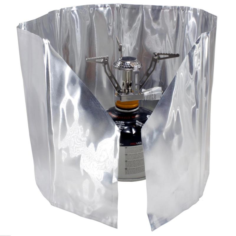 Superlett vindskjerm i aluminium. Brettes rundt ildstedet som ønsket. Brukes som tilbehør til en brenner for å skjerme brenneren for vind.