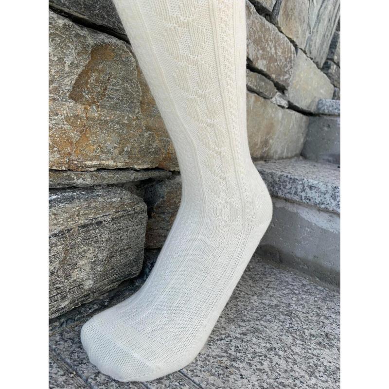 Kabelstrikkede strømper fra Islow i ullkvalitet. Strømpene er knelange og passer perfekt til nikkers.